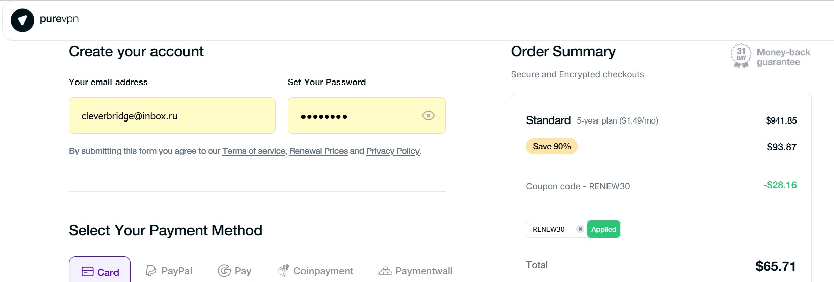 Entering a Coupon Code on PureVPN